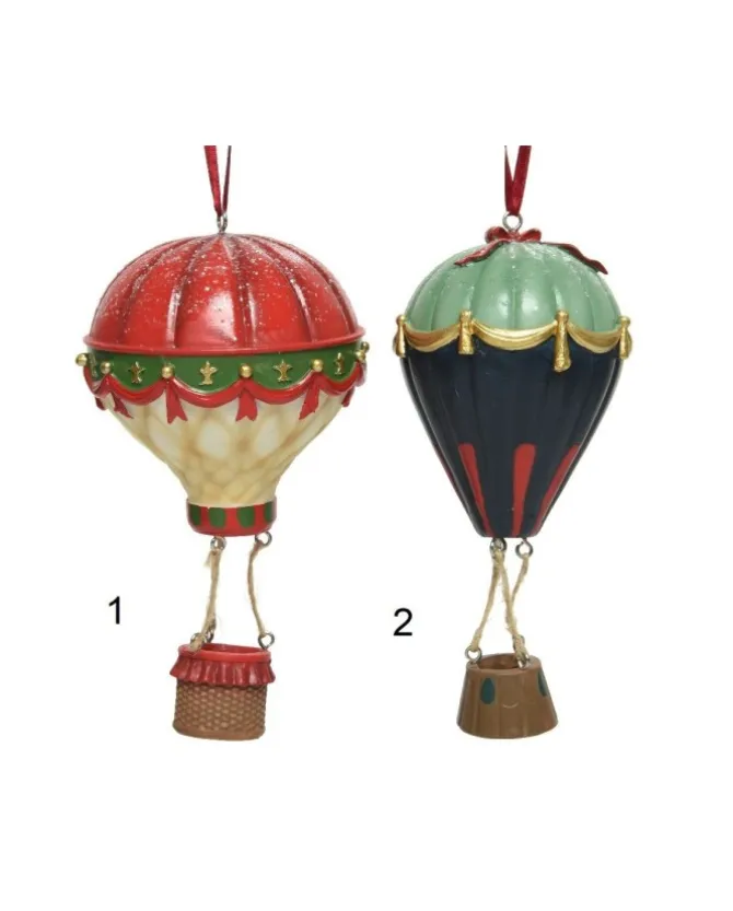1Pz Addobbo Appendino Mongolfiera In Poliresina Glitterato Per Albero Di Natale