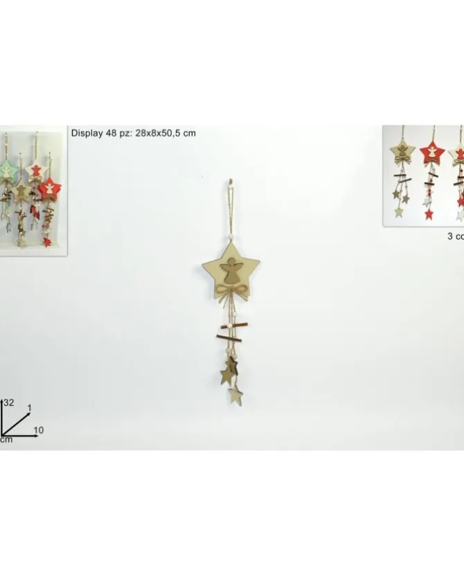 Addobbo Appendino Stella Di Legno Con Angelo 32X1X10 Cm