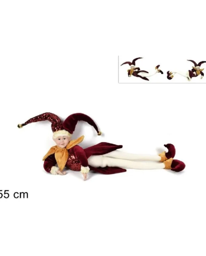 Misure: 55 Cmaddobbo Di Natale Giullare Sdraiato Con Abito In Velluto Bordeaux