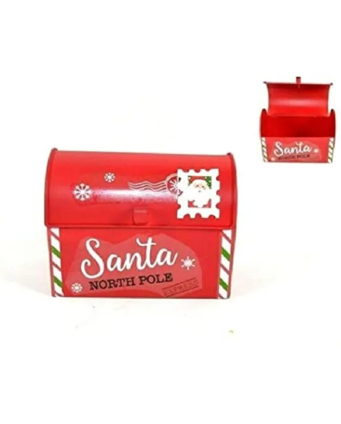 Addobbo Natalizio Cassetta Della Posta In Metallo Rossa 15X9X11 Cm