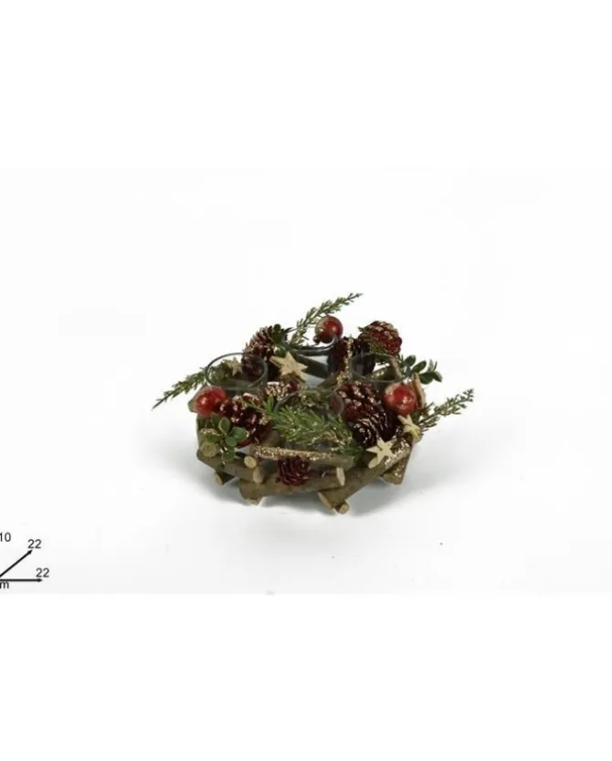 Misure: 10X22X22 Cmaddobbo Natalizio Portacandela In Legno 4 Posti Con Pigne