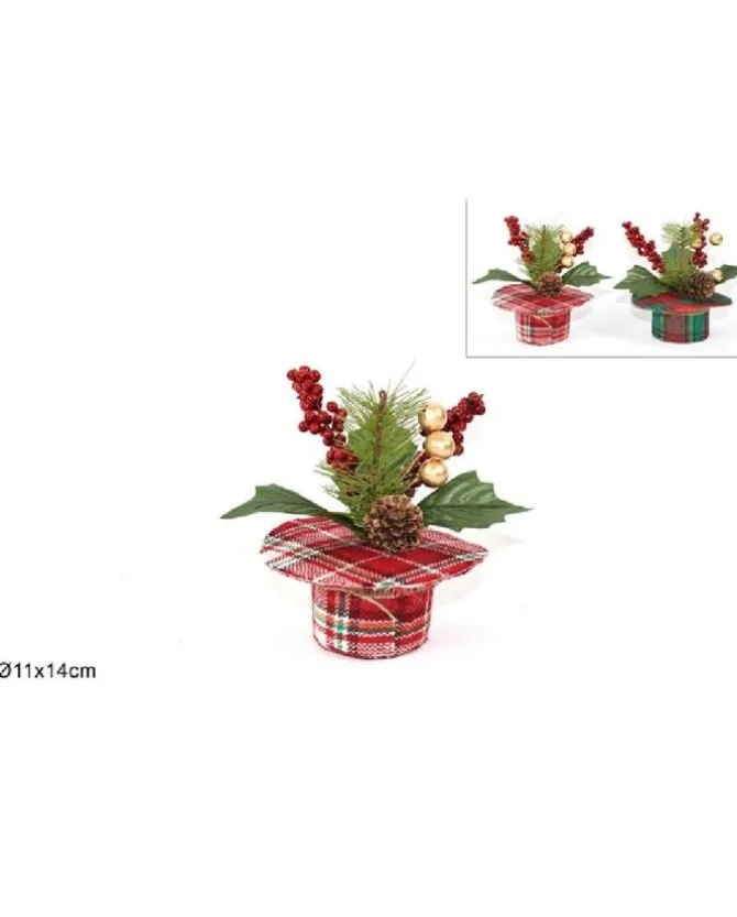 Addobbo Piantina Natalizia Cappello Scozzese 14 Cm