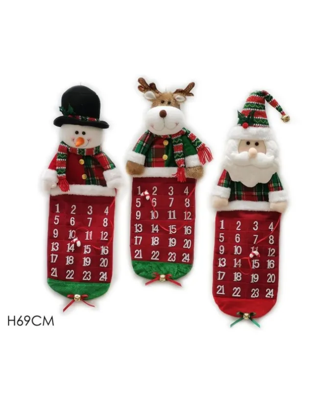 3 – Babbonatalecalendario Dell’Avvento In Stoffa Con Bastonciono Per Segnare I Giorni, Disponibile In Tre Versioni: Pupazzo Di Neve, Renna, Babbonatale.