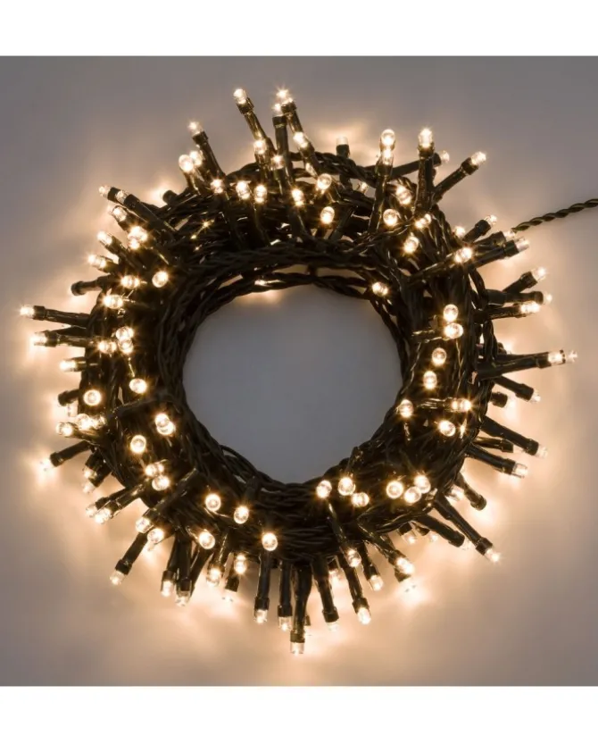 Confezione 1 Pzcatena Lineare Tl-C 200 Led Bianco Caldo O5Mm Reflex, Memory Controller 8 Giochi Di Luce Selezionabili Integrato Nel Trasformatore 31V, Uso Esterno, Cavo Verde, Prodotto Certificato Imq, Dimensioni 2+8M, Scatola Color (Xkc Art. Led Tl200-C 10M).