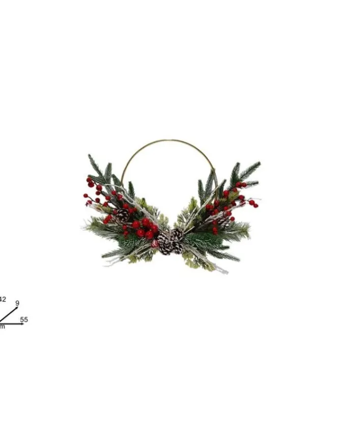 Misure: 42X55X9Dietroporta A Cerchio Con Rametti, Bacche Rosse E Pigne Innevate. Questo Fuoriporta E Semplice Ed Elegante, Ideale Per Creare Un’Atmosfera Natalizia.