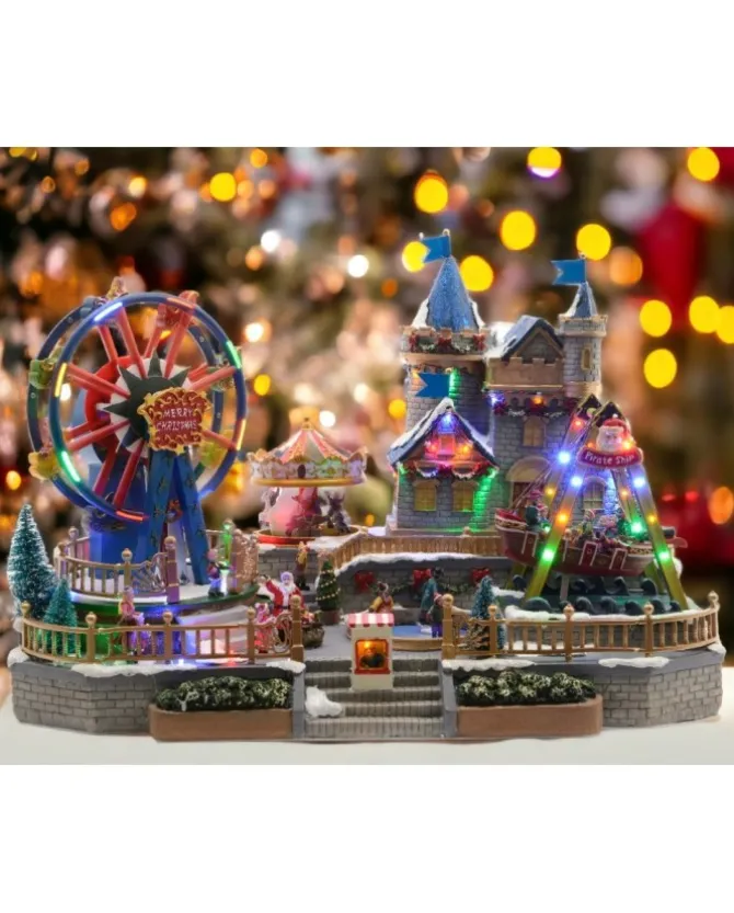 Dotazioni: Luci Led E Giostrine In Movimentola Magica Giostrina Natalizia Trasporta Il Cuore In Un Incantevole Paesaggio Innevato, Arricchito Da Una Suggestiva Ruota Panoramica E Una Nave Basculante. Con Dimensioni Di 35X56,5X38 Cm, E Una Perfetta Decorazione Festosa Multicolore. Il Trasformatore Incluso Permette Il Movimento Delle Attrazioni, Accompagnato Da Dolci Melodie Natalizie, Donando Un’Atmosfera Di Festa Unica E Coinvolgente. Un Meraviglioso E Vivace Complemento Per Arricchire La Magia Del Periodo Natalizio.