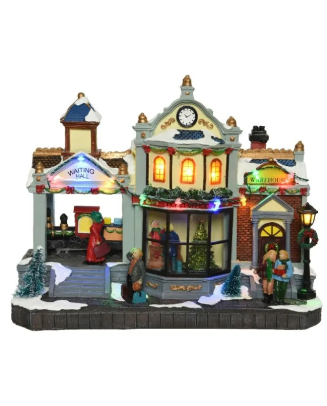 Misure: 14,5X30,8X24,8 Cmgiostrina Villaggio Di Natale In Poliresina Stazione Ferroviaria Con Luci