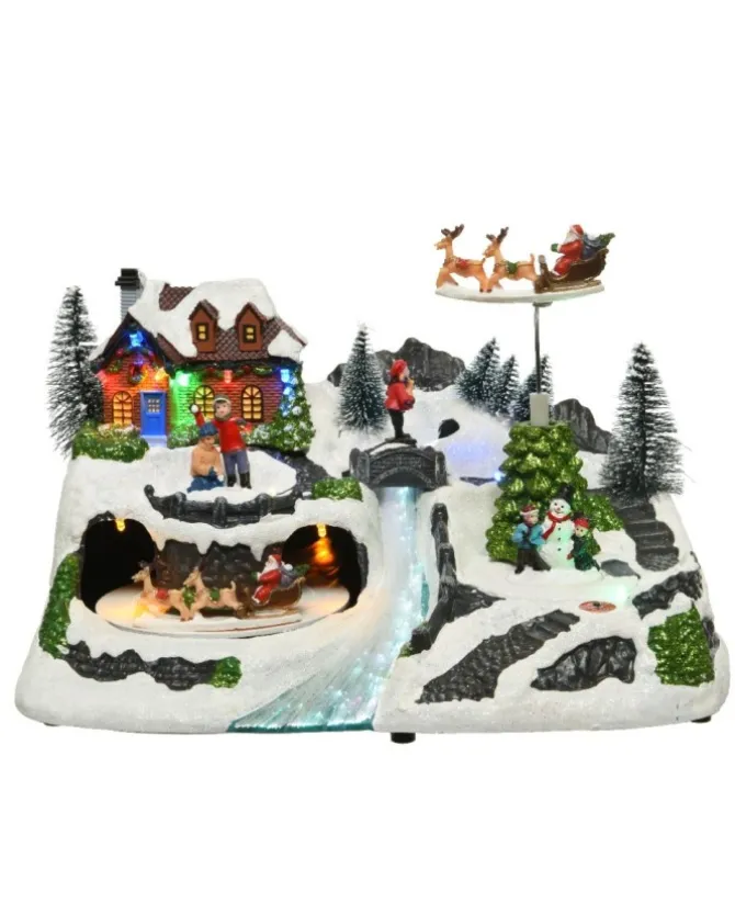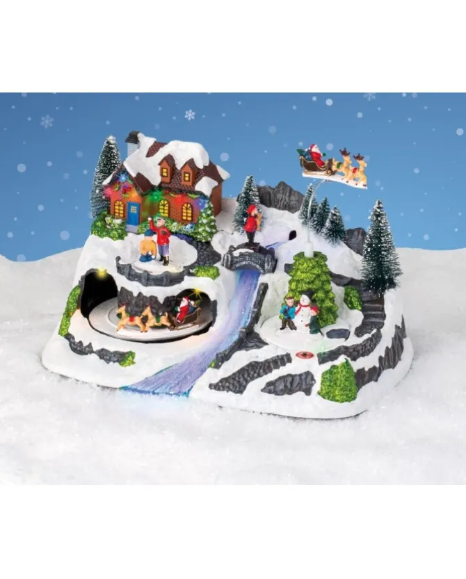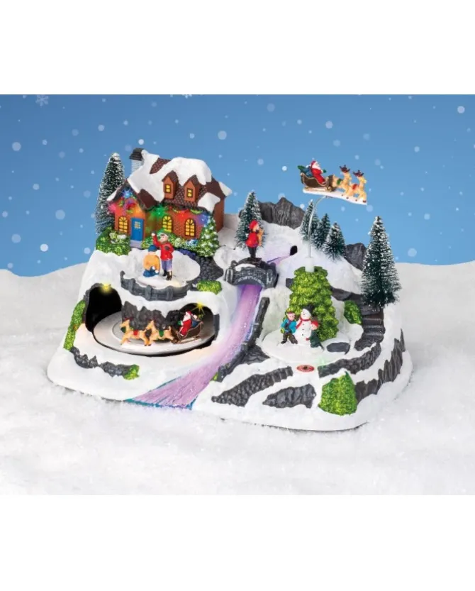 Materiale Plasticagiostrina Villaggio Natalizio Con Treno – Slitta In Movimento E Cascata Led