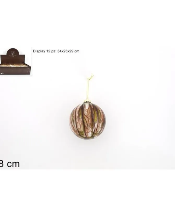 Pallina Di Vetro 80 Mm Marmorizzata Marrone E Verde