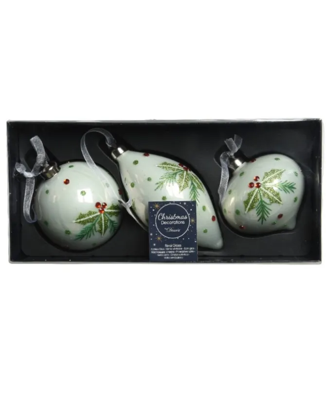 1Pz Pallina Di Vetro Decorata A Mano Bianco Lucido Con Renna 80Mm