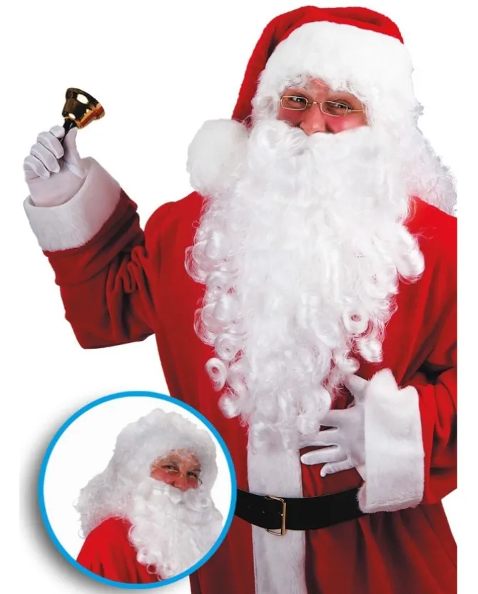 Parrucca E Barba Lunghissima Da Babbo Natale. Sono Entrambe Bianche E Con Boccoli Dall’Effetto Realistico. La Barba
