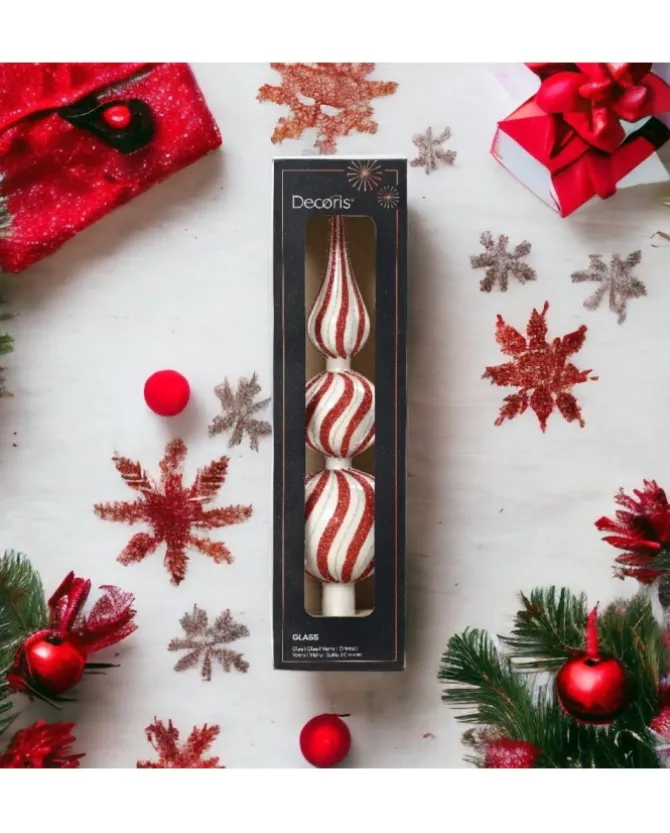 Puntale Per Albero A Strisce Rosse Glitter 31 Cm