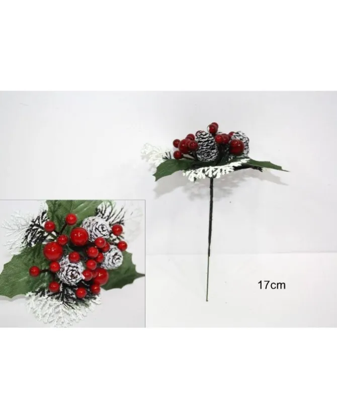 Spillone Natalizio Con Fogli E Bacche E Pigne Innevate 17 Cm
