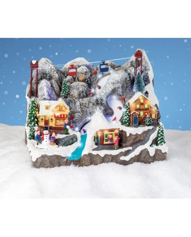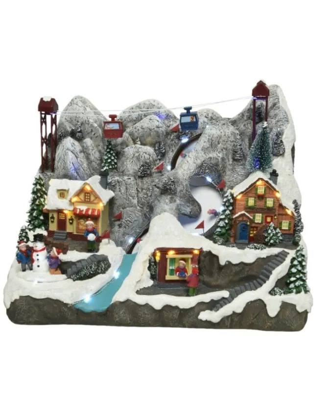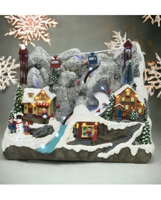Immerso In Un’Atmosfera Incantata, Il Villaggio Natalizio Cattura L’Essenza Dell’Inverno. Uno Scenario Vivido Si Sviluppa: Sciatori Eleganti Scendono Dalle Piste Innevate, Mentre Al Botteghino Del Noleggio Sci Si Respira L’Emozione Dell’Avventura. La Maestosa Cabinovia In Background Aggiunge Un Tocco Pittoresco. Bambini Gioiosi Creano Pupazzi Di Neve E Lanciano Palle Di Neve, Riempiendo L’Aria Di Allegria. Le Misure Del Villaggio (25.5X37.5X28.5 Cm) Lo Rendono Affascinante, Adatto Ad Ogni Spazio. Con Spina Ue, Cavo Di 180 Cm E Alimentazione Tramite Trasformatore, Questo Scenario Animato Offre Movimento Costante E Delicata Musica Natalizia, Completando L’Esperienza Magica.
