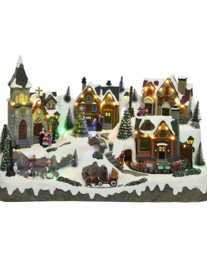 Villaggio, Giostrina, Paesaggio Con Treno In Movimento Luci E Suoni