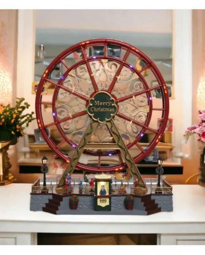 La Giostrina Di Natale Con Illuminazione A Led Multicolore E Una Deliziosa Attrazione Cardine Per Le Festivita. Con Le Sue Dimensioni Compatte Di 37 Cm Di Lunghezza, 21 Cm Di Larghezza E 45 Cm Di Altezza, Questa Ruota Panoramica Incantera Sia I Piu Piccoli Che Gli Adulti. L’Abbinamento Di Luci Led Multicolori Trasmette Una Magica Atmosfera Natalizia, Catturando L’Essenza Dell’Incanto Delle Feste. Inoltre, L’Aggiunta Di Suoni Natalizi Come Melodie Di Campane E Cori Festosi Rende L’Esperienza Ancora Piu Coinvolgente. Questa Giostrina Di Natale E Perfetta Per Decorare La Casa, L’Ufficio O Come Dono Speciale Per Diffondere Gioia E Spirito Festivo. Preparati A Essere Rapito Dalla Magia Del Natale Con Questa Affascinante Giostra Luminosa!