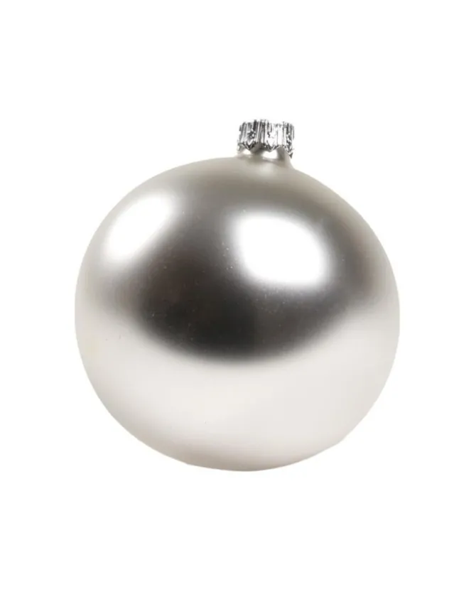1Pz Pallina In Vetro Tinta Unita Argento Opaco 80 Mm