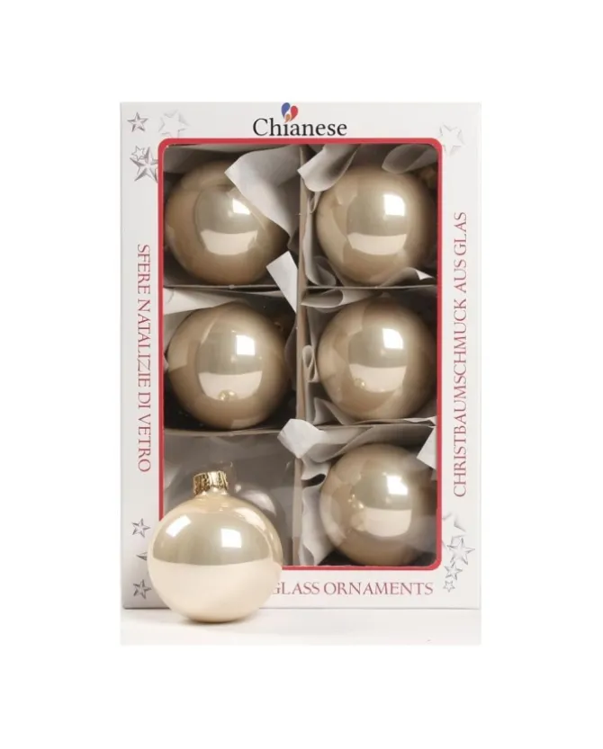 1Pz Pallina Sfera Di Vetro Champagne Lucido 60Mm Per Albero Di Natale