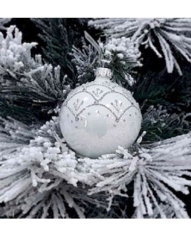 1Pz Pallina Sfera Di Vetro Decorata A Mano 80Mm Per Albero Di Natale Bianca