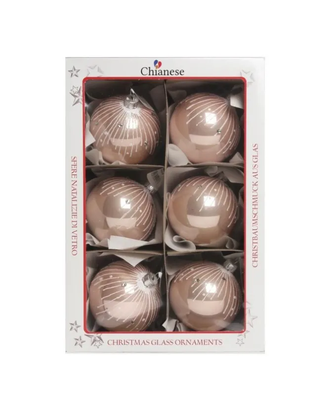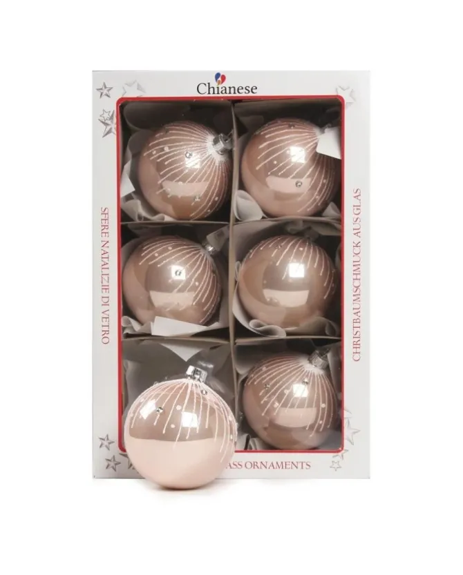 Colore: Rosa – Biancosfera Di Vetro Decorata A Mano Rosa Lucido Con Decori Bianchi 80Mm Per Albero Di Natale