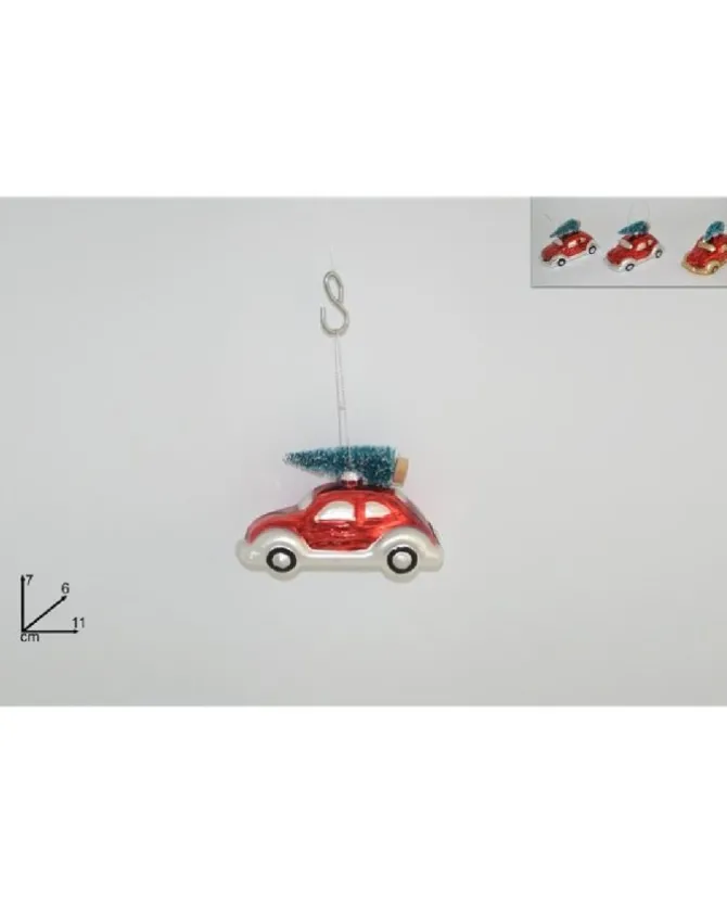 Misure: 7X6X11 Cmaddobbo Appendino Auto Di Vetro Rossa Con Alberello Per Albero Di Natale 7X6X11 Cm