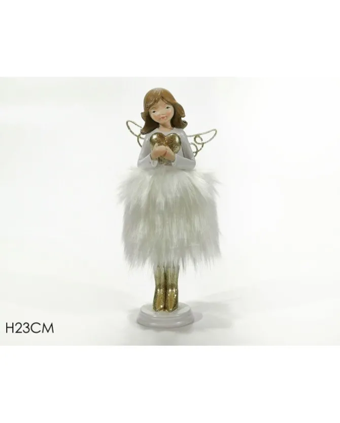 Altezza: 23 Cmangelo Con Vestito Bianco E Dettagli Oro Con Cuore Dorato