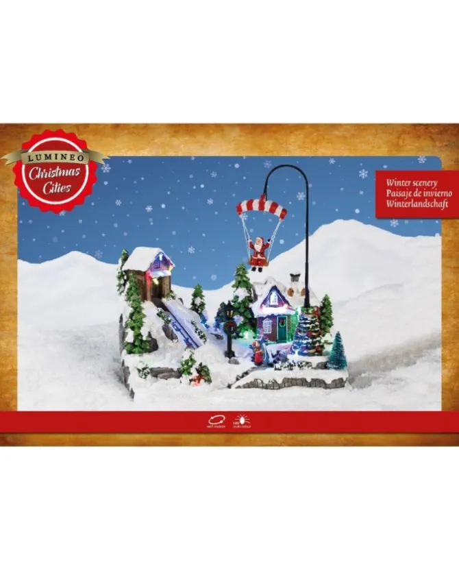 Misure: 19X30X31 Cmgiostrina Con Luci E Movimento, Animazione Babbo Su Paracadute E Bambini Che Scivolano Sulla Neve