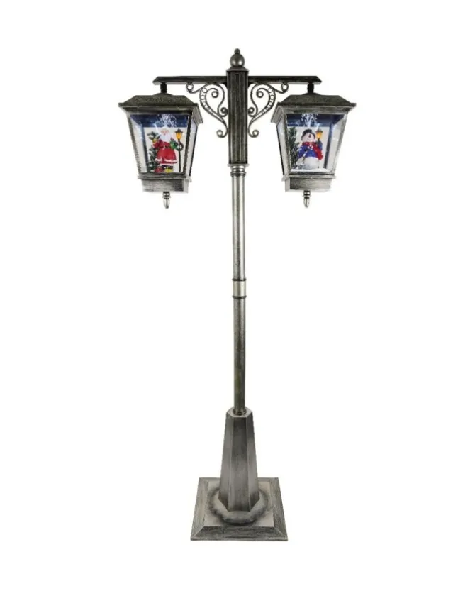Lampione Doppia Lanterna Con Babbo Natale E Pupazzo Di Neve 80X40X180 Cm