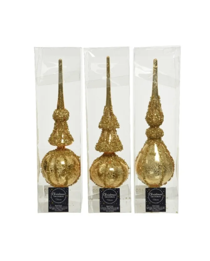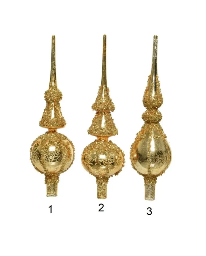 Puntale In Vetro Oro Con Glitter Oro 3 Modelli Assortiti 31 Cm
