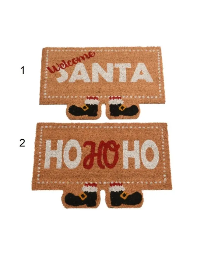 Zerbino Tappeto Natalizio In Pelo Di Cocco Naturale Con Piedi 2 Modelli Assortit